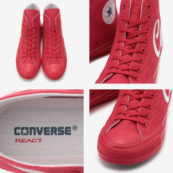 高機能カップインソール「REACT」 滑りにくいアウトソール「TractionSole」 消臭抗菌加工のメッシュライニング メモリーフォーム内臓し、フィット感と汚れ防止のタン 撥水加工シューレースで汚れ軽減などの ALL STAR 100 ITEM SPEC採用 アッパー:キャンバス アウトソール:ラバー カラー:レッド 他にブラック,ホワイトもあります。